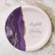 Agate Geode Script Purple Gold Blush Wedding Paper Plate