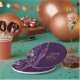 These elegant modern wedding plates feature a purple watercolor design trimmed with faux gold glitter. Easily customise the gold-coloured text on a rich plum background, with the names of the bride and groom in handwriting calligraphy over a large ampersand.
