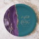 Agate Geode Script Purple Gold Teal Wedding Paper Plate