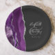 Agate Geode Script Purple Silver Dark Wedding Paper Plate