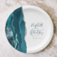 Agate Geode Script Teal Silver Wedding Paper Plate