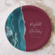 Agate Geode Silver Script Burgundy Wedding Paper Plate