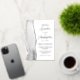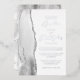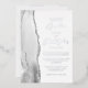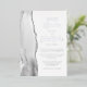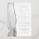 The left-hand edge of this elegant modern wedding invitation features a gray watercolor agate border trimmed with faux silver glitter. The customizable text combines script and sans serif fonts in real silver foil on a white background. The reverse side features a matching agate design.