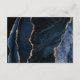 The left-hand edge of this elegant modern wedding details enclosure card features a navy blue watercolor agate border trimmed with faux gold glitter. The title is in modern handwriting script, with the customisable text below in charcoal grey copperplate font on a white background. The reverse side features a matching navy blue and gold agate design.