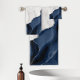 Agate Navy Blue Silver Glitter White Marble Bath Towel Set