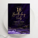 Purple and gold agate 18th birthday party invitation. Elegant modern design featuring watercolor agate marble geode background, faux glitter gold and typography script font. Trendy invite card perfect for a stylish women's bday celebration. Printed Zazzle invitations or instant download digital printable template.