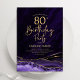 Purple and gold agate 80th birthday party invitation. Elegant modern design featuring watercolor agate marble geode background, faux glitter gold and typography script font. Trendy invite card perfect for a stylish women's bday celebration. Printed Zazzle invitations or instant download digital printable template.