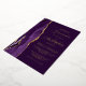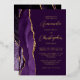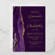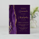 The left-hand edge of this elegant modern wedding invitation features a purple watercolor agate border trimmed with faux gold glitter. The customisable text combines script and sans serif fonts in real gold foil on a plum background. The reverse side features a matching agate design.