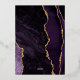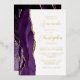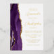 The left-hand edge of this elegant modern wedding invitation features a purple watercolor agate border trimmed with faux gold glitter. The customisable text combines script and sans serif fonts in real gold foil on a white background. The reverse side features a matching agate design.