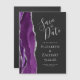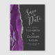 This elegant modern save the date magnet card features a purple watercolor agate border trimmed with faux silver glitter. The customizable text is light silver gray on a slate black background.