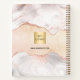 This notebook is perfect for the professional on the go. The rose gold and white agate marble background makes this notebook a beautiful addition to your desk, and you can use it to write down notes, jot down ideas, or keep track of important appointments. You can also personalise it with your business logo both on front and on the back cover. Add your name, monogram initials and full name.