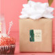This elegant modern wedding sticker features an emerald green watercolor agate geode design trimmed with faux gold glitter. Easily customise the green text on a champagne beige background, with the names of the bride and groom in whimsical handwriting calligraphy over a large ampersand.