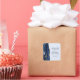 This elegant modern wedding sticker features a navy blue watercolor agate geode design trimmed with faux gold glitter. Easily customize the dark blue text on a pale blue background, with the names of the bride and groom in handwriting calligraphy over a large ampersand.