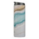 This stunning abstract design captures the mesmerising beauty of agate with a coastal twist. Swirling bands of luminous teal, turquoise, and white mimic the intricate patterns found in precious opals, while also evoking the serene flow of ocean currents. Golden veins and speckles interspersed throughout the piece add a touch of opulence, reminiscent of sun-kissed shores. The smooth, undulating lines and layers create a sense of depth and movement, much like the banding in natural agates. This piece seamlessly blends the allure of gemstones with the tranquillity of a seaside vista, making it perfect for those who appreciate both geological wonders and coastal aesthetics in modern, abstract form. Personalise with a name.