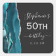 This elegant modern 50th birthday party sticker features a teal blue watercolor agate geode design trimmed with faux silver glitter. Easily customise the silver grey text on a slate black background with the name of the guest of honour, the birthday year and the date.