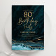 Teal and gold agate 80th birthday party invitation. Elegant modern design featuring turquoise watercolor agate marble geode background, faux glitter gold and typography script font. Trendy invite card perfect for a stylish women's bday celebration. Printed Zazzle invitations or instant download digital printable template.