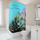 Agave and Prickly Pear Cactus on Turquoise Wall Shower Curtain