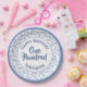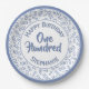 Age 100 Scattered Number Pattern Blue/White Paper Plate