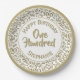 Age 100 Scattered Number Pattern Gold/White Paper Plate