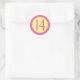 Age 14 Number Customisable Pink Text on Yellow Classic Round Sticker