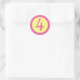 Age 4 Number Customizable Pink Text on Yellow Classic Round Sticker