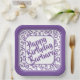 Age 50 Random Number Pattern Purple/White Paper Plate