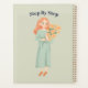 Embrace a touch of vintage charm with this beautifully illustrated notebook. Featuring a soft, hand-drawn character holding a bouquet of sunny yellow wildflowers, this design is set against a lush botanical pattern of sage greens, dusty pinks, and deep indigos.