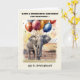 Funny birthday card lettered with elephant themed play on words "age is irrelephant". You can personalise the card front and the message inside. Design features watercolor illustration of elephants on the savannah with colourful birthday balloons drifting into the sky. Fun card with light-hearted, age related humour for friend or relative and easy to personalise with name or relation. Matching mug available in my store.