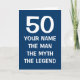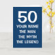 Age specific Birthday card | The man myth legend. Funny 50th Birthday greeting card for men. Humourous card idea for dad, husband, uncle, grandpa, brother etc. Personalizable wishes text like Happy Birthday. Fifty year old. 50th Birthday, customisable age number.