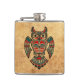 This unique design features a Haida inspired owl. The Native pattern depicts a tribal owl design that is comprised of flowing lines and elegant shapes. The wings of the nocturnal bird spread out on both sides of the pattern with its tail feathers hanging down below. Rough textures and large cracks gives the pattern and aged and worn look. This beautiful pattern is a stylish representation of this wise and wonderful flying creature.