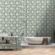 Aged Botanical Tile - Aqua and Bone Wallpaper