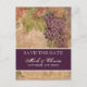 The "Aged Grape Vineyard" Wedding collection has invitations of all sizes and shapes and many products to coordinate with them. This is a "Save the Date" postcard and it is two-sided. Perfect for summer or fall weddings and those being held in unique places such as at a winery or in wine-country. The artwork has a beautiful aged, textured depth to it. Layers of watercolored grapes, leaves, antique tuscan tiles and hand drawn swirls are worked together for this rich and elegant design. There are a wide range of products available with this collection. YOU MIGHT ALSO ENJOY:BRIDAL SHOWER:
