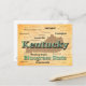 Aged antique paper Kentucky state pride image including map silhouette with cities, towns and nickname.
