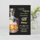 A modern birthday party invitation with bold numbers, a bottle of whiskey and a glass of whiskey. Customize the details for a unique and cool birthday celebration.