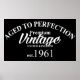 Showcase the year 1961 with a design that has the message Aged To Perfection Premium Vintage United Kingdom 1961. This design looks really effective on this Poster