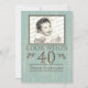 Aged look wood in a sea foam colour 40th birthday photo frame invitation for him or her. Look Who's Ninety, upload a favourite photo of any age and customise text for your party.