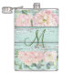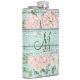 Aged Wood Monogram Name with Hydrangea Bloom Hip Flask