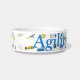 An agility dog bowl to share your accomplishments with your dog. This dog bowl has colourful agility equipment in the background and a place to enter your agility title to replace the one shown. Just click and type. It is easy.