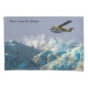 A digital painting of a de Havilland DHC-3 Otter, operated by mythical Flying Moose Aviation of Talkeetna, Alaska, flying over a snow-covered mountain range. The leading edge of an approaching snowstorm can be seen coming up over the mountains in the near background. Add your own text.