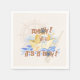 Adorable paper napkins - available in various sizes, perfect for anyone throwing a nautical baby shower and featuring a sailor teddy bear inside a folded paper boat as he sails along the ocean waves with a little duck beside him. A compass and spy glass can be seen in the background. Fun bold font reads: "Ahoy! It's a boy!"
