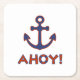 AHOY! Buoy + Anchor Design Red+Blue Square Paper Coaster