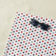 Beach towel with polka dots in nautical colours of red and blue on white.