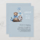 For a baby shower celebrating a baby boy. A blue grey background, a sailor teddy bear boy. Personalise and add the name of the mum to-be and party details. Text: Ahoy. It's a Boy!