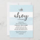 Modern baby shower invitation with bold stripes and cute silver whale. Perfect for a boy marine themed baby shower.