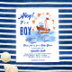 Ahoy it's a boy nautical marine baby shower budget invitation template with whales, little fish, a boat, ocean theme.