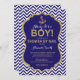 Ahoy it's a Boy! Nautical Baby Shower by mail Invitation. Navy Blue and Gold Glitter. Navy and White Chevron background. For further customisation, please click the "Customise it" button and use our design tool to modify this template.