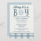 Ahoy! It's a Boy! Celebrate the arrival of a new baby in style with these nautical baby shower invitations. They feature the cute slogan "Ahoy it's a boy" , a soft blue and cream colour palette and plaid and nautical accents.