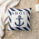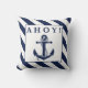 Ahoy! Nautical Anchor With Navy Blue & White Stripes Cushion Throw Pillow