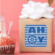 Nursery art Ahoy nautical wheel on blue striped background | © and ® Bigstock® - All Rights Reserved.