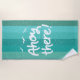Cool blue striped beach towel printed with the words Ahoy there! The blue stripes have been given a distressed speckled look, and there are 3 white seagulls flying overhead. Ideal for the sailor, beach lover, and surfer. Look out for co-ordinating products within my store BridgetsBeachHouse.